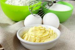 Em uma taça misture as gemas dos ovos, o açúcar e a manteiga e bata muito bem com varas ou batedeira, até obter uma textura bem cremosa, consistente e homogênea.