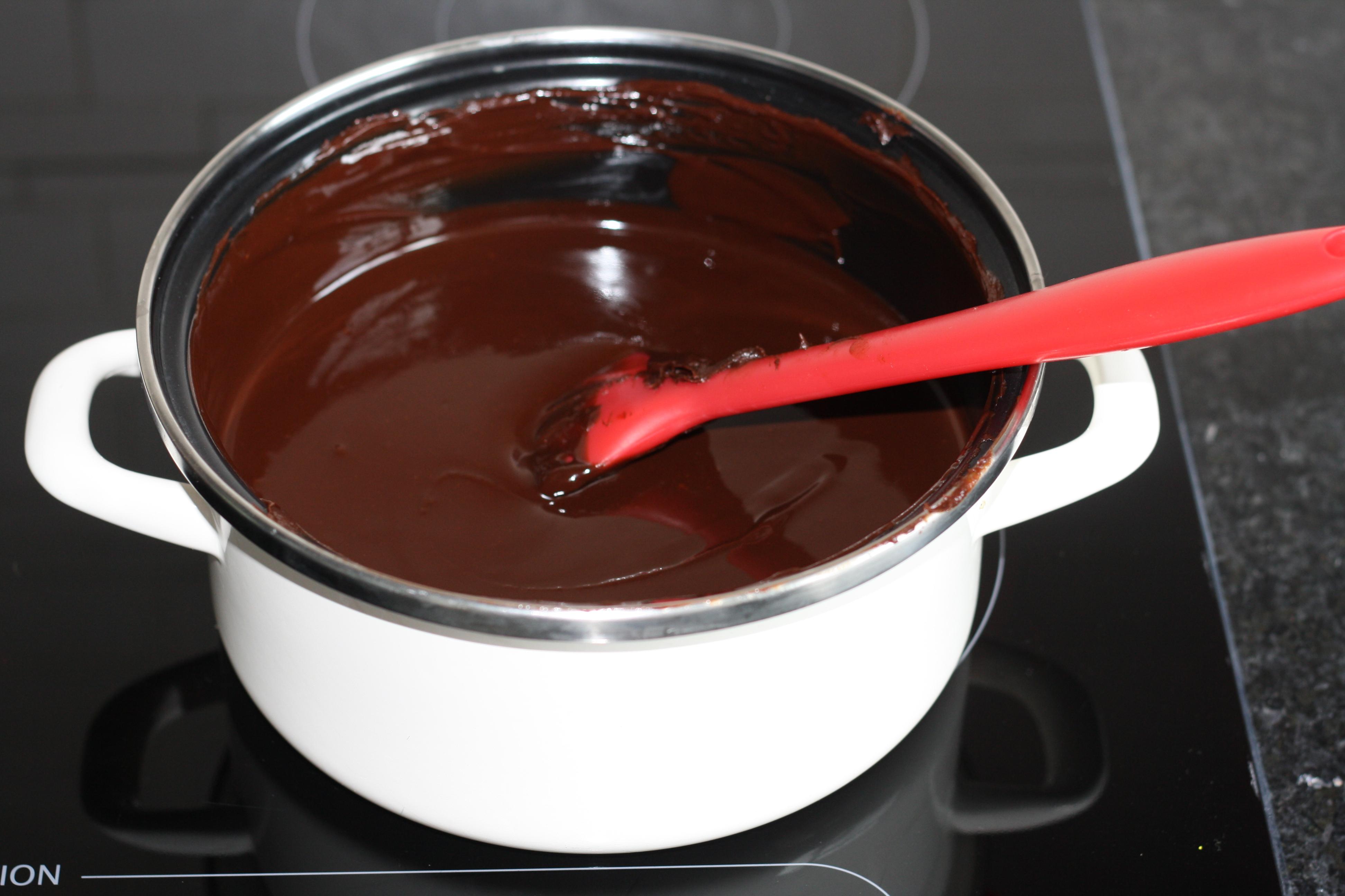 Retire a cobertura do fogo e use-a para cobrir todo o bolo. Está pronto!