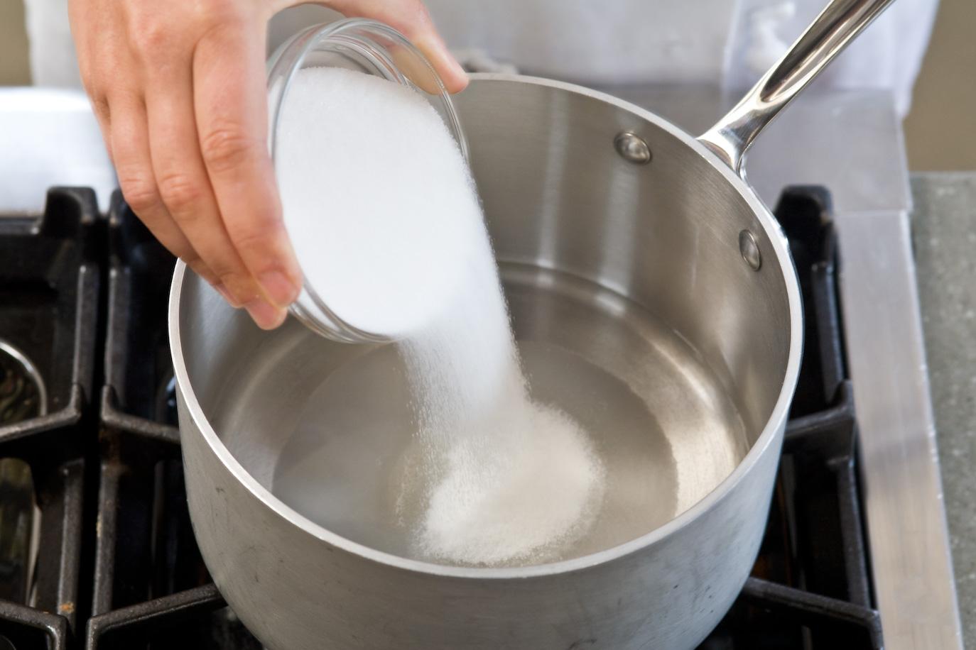 Para fazer a cobertura do bolo de coalhada, coloque o vinho branco numa panela rasa e espere que ferva. Acrescente o açúcar e mexa tudo muito bem. Cubra toda a torta com o glacê, ainda quente.