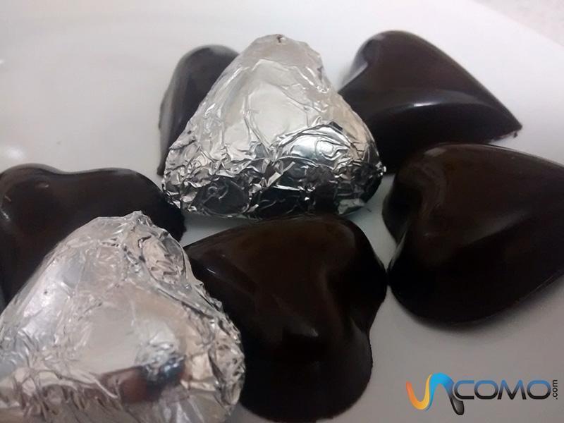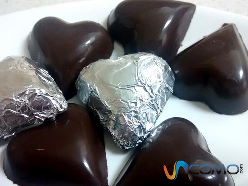 Ainda que eles possam ser deixados assim, explicamos a você um conselho de apresentação e conservação: embalar os bombons em forma de coração. Isto será indicado especialmente se você for dar os bombons de presente para outra pessoa. Para isso, o mais recomendável será usar papel metalizado que você poderá encontrar em uma infinidade de cores.