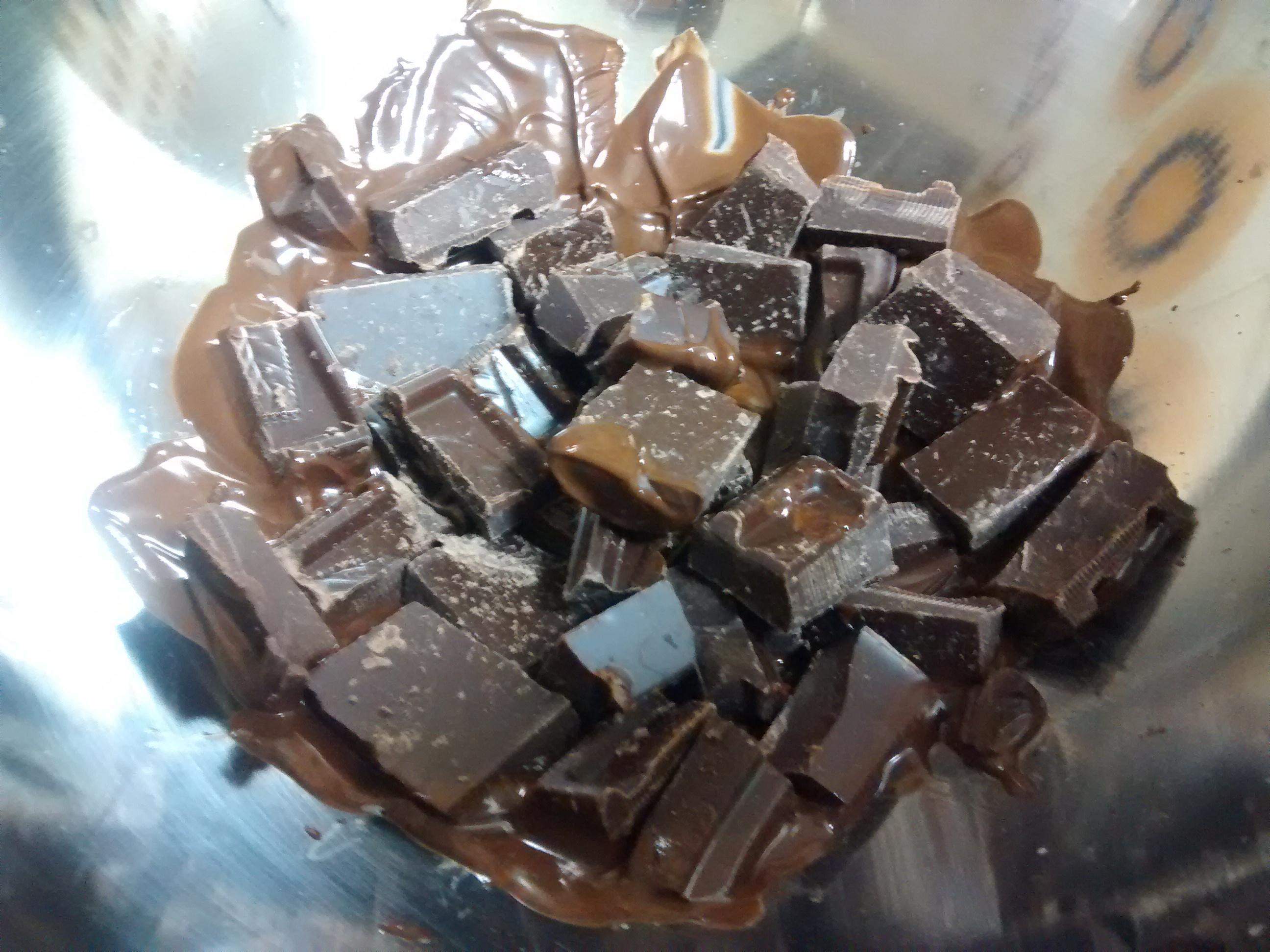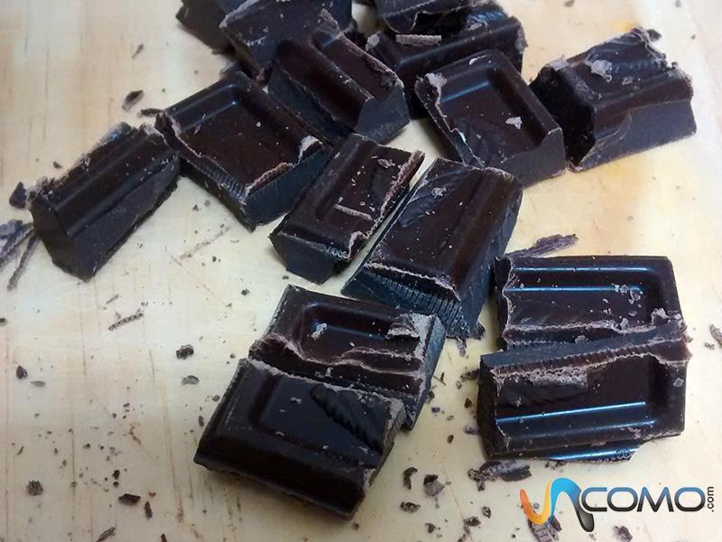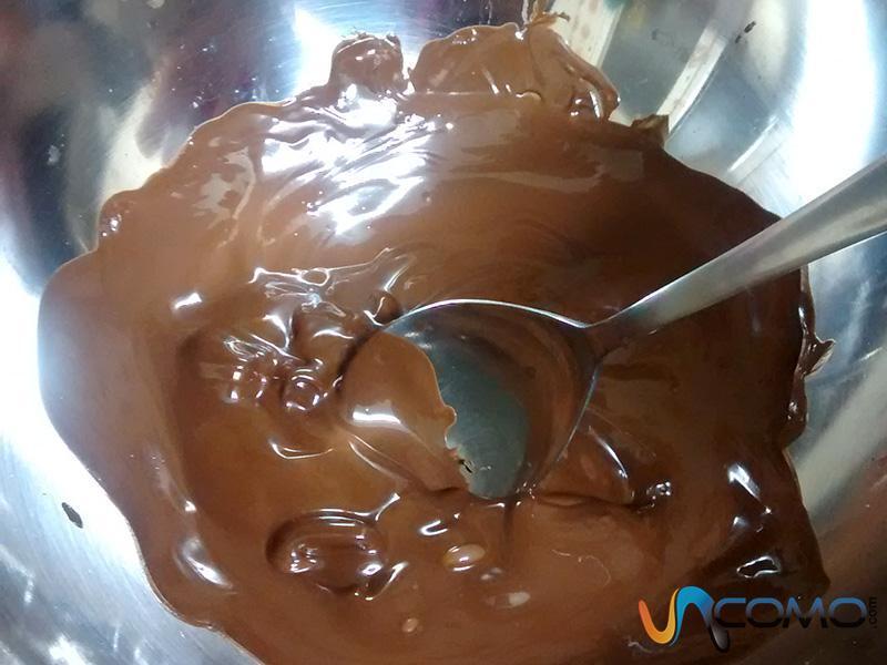 Assim que você perceber que o chocolate para seus bombons já está derretido e sem que nunca chegue a ferver, você deverá tirá-lo do fogo, enrolando a tigela com um pano de prato para manter a temperatura. Então, você deverá acrescentar o terço de pedacinhos de chocolate que tínhamos reservado no início da receita.