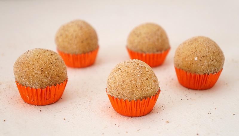 Vá colocando algumas bolinhas dentro do prato de açúcar com canela e chacoalhe o prato de forma que a bolinha de brigadeiro de churros fique toda coberta por essa mistura. Faça isso com todas as bolinhas.
