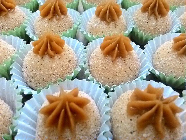 Coloque o doce de leite que sobrou e faça uma pequena gota sobre o topo de cada brigadeiro. Agora sim você tem um brigadeiro de churros digno de confeitaria!