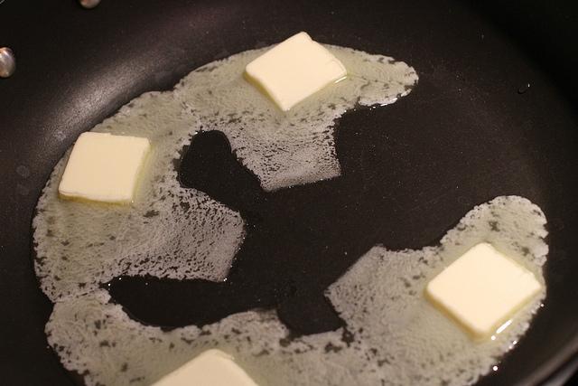 Acenda o fogo alto e jogue as duas colheres de manteiga na panela para derreter.