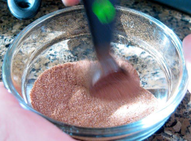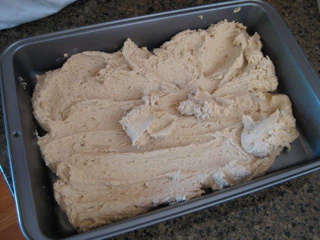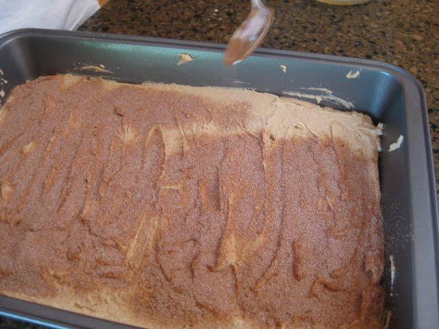 Polvilhe uniformemente a mistura com canela sobre a mistura na forma para assar.