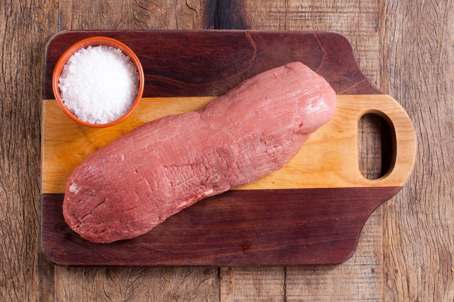 Se a peça de carne estiver muito grande, corte em mantas de aproximadamente 3 centímetros de espessura. Ou, quando for ao açougue você já pode pedir o corte em manta.