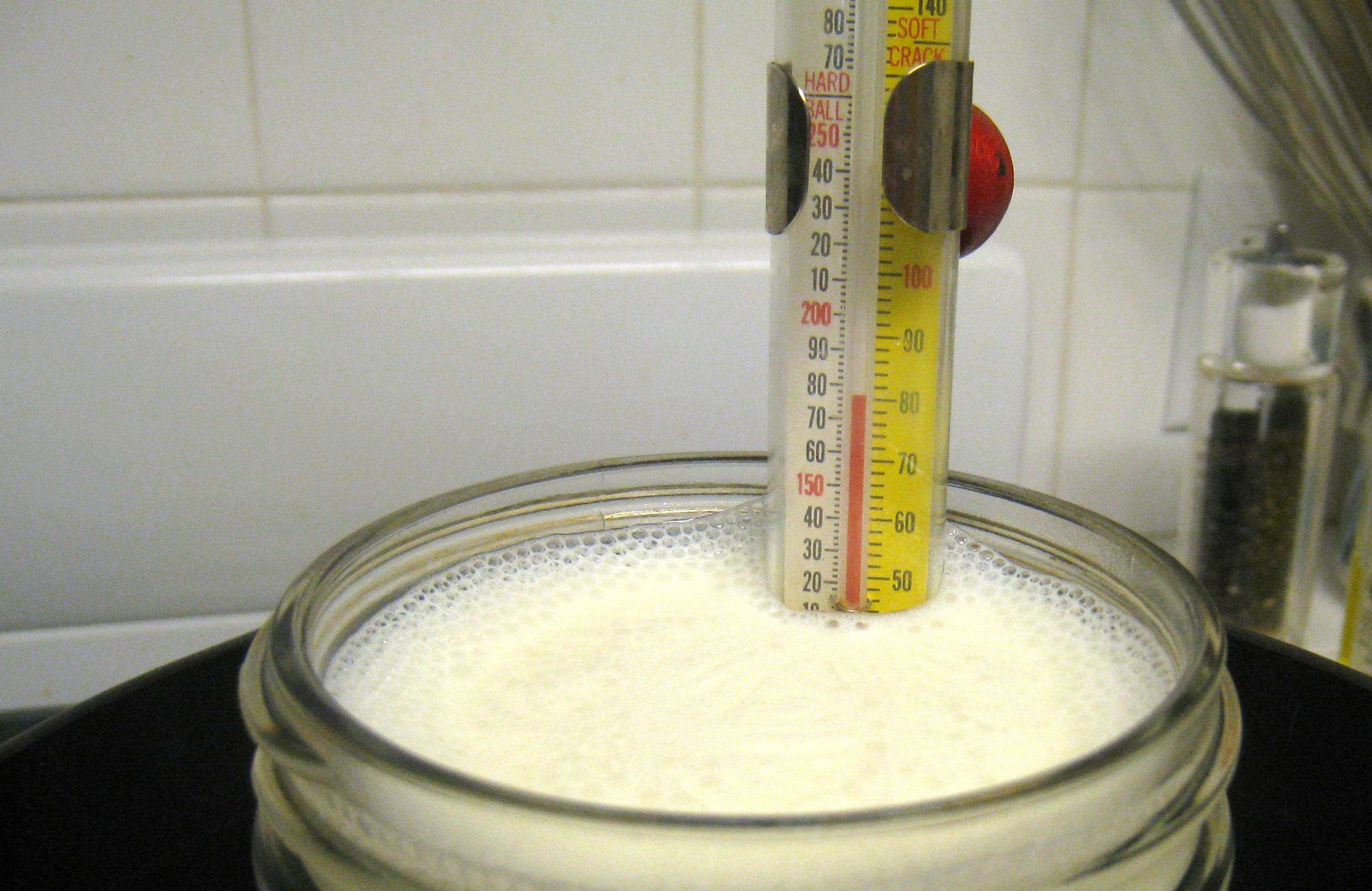 Deixe o leite esfriar até os 35 º aproximadamente, medindo a temperatura com um termômetro de cozinha. Se não tem um em casa, espere até conseguir manter o dedo dentro do leite por dez segundos.