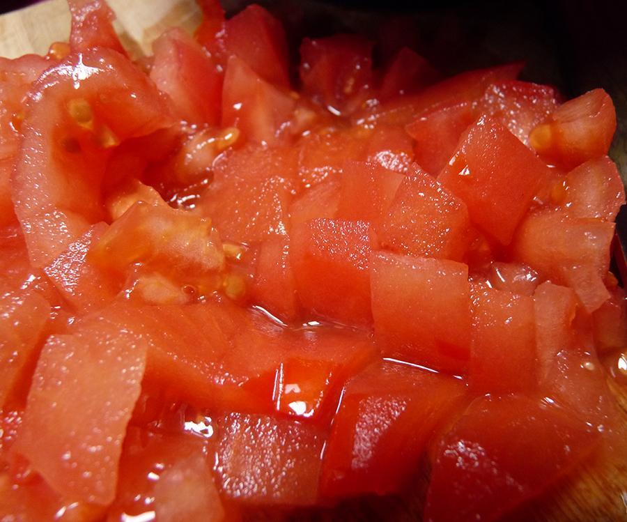 A primeira coisa que deve fazer antes de preparar a compota de tomate é descascar e picar todos os tomates. Se estiver um pouco complicado de descascá-los, recomendamos fazer uma cruz na base, colocar água para ferver e esquentá-los durante alguns segundos. Assim com certeza você não terá problemas para retirar a pele.