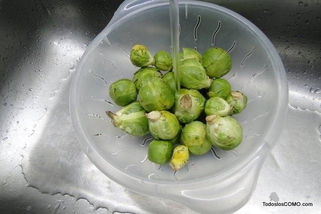 Quando as couves estiverem bem limpas, reserve até que a água comece a ferver; nesse ponto coloque na panela e deixe que cozinhem por 15 minutos. Para saber se estão prontas, introduza uma faca em qualquer uma delas: se estiverem macias é hora de retirá-las do fogo. Escorra e reserve.