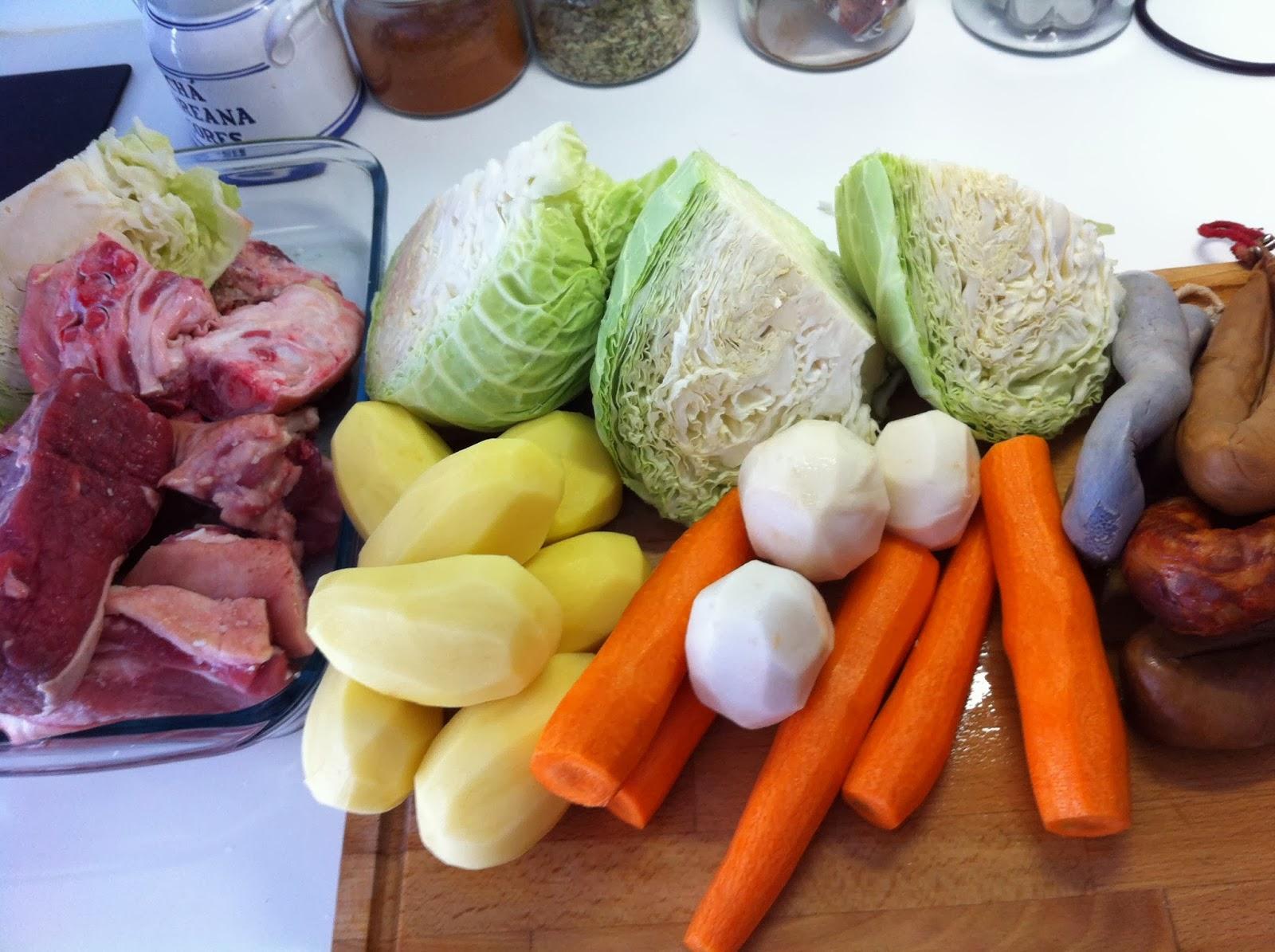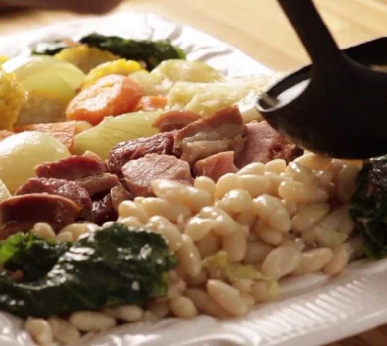 Para servir bem quente, passe as carnes pela água do cozido e leve para a mesa de imediato. Está pronto a comer!