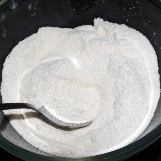 Para começar a preparar os crepes sem ovo pegue um recipiente, coloque a farinha e o açúcar e misture-os bem. Recomendamos que o faça a mão, pois é bem mais cômodo e rápido.