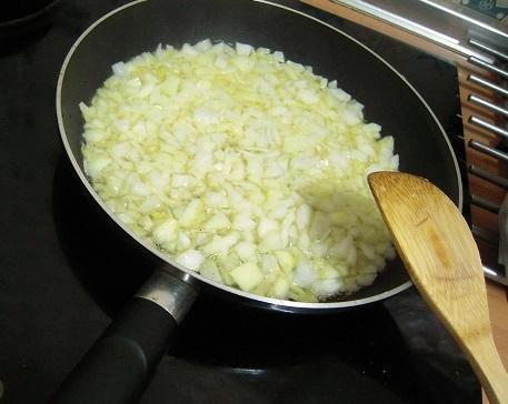O primeiro que devemos preparar para nossos croquetes de atum é a cebola, por isso depois de descascá-la será necessário picá-la em pedaços pequenos. Ao mesmo tempo, devemos colocar no fogo baixo uma frigideira com óleo e, quando estiver bem quente, acrescentar a cebola picada para que cozinhe lentamente.