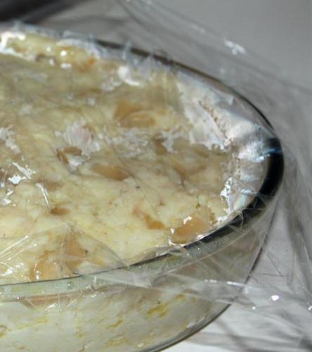 Agora deverá deixar a massa dos croquetes esfriar e repousar, colocando em um recipiente e cobrindo com papel transparente antes de colocar na geladeira. Pode deixar de um dia para o outro para que adquira mais consistência e evitar que os croquetes abram ao fritar; se a preparação dos croquetes for urgente, poderá fazê-lo após algumas horas.