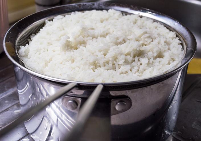 Prepare o arroz branco em uma panela separada enquanto for fazendo o restante dos ingredientes do Kare Raisu ou curry japonês. Quando notar que o arroz branco está bem cozido, escorra e reserve.