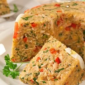 Coloque na forma o preparado, pressione e deixe esfriar um pouco. Depois desenforme e sirva ainda quente!
