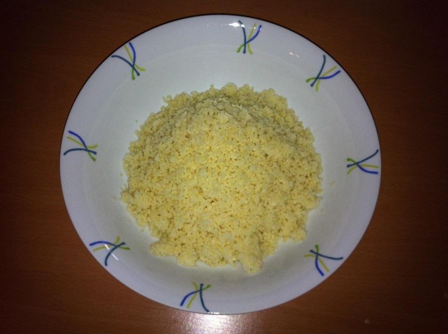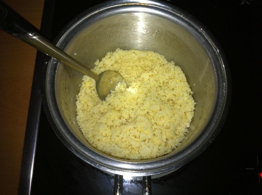 Após o cuscuz ter descansado, mexa-o com uma colher para que fique bem solto.