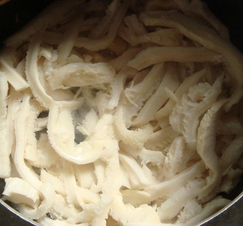 Lave bem o buço retirando toda a gordura. Leve a ferver durante cerca de 30 minutos em uma panela, esprema o suco dos dois limões e coloque os limões também dentro da panela.