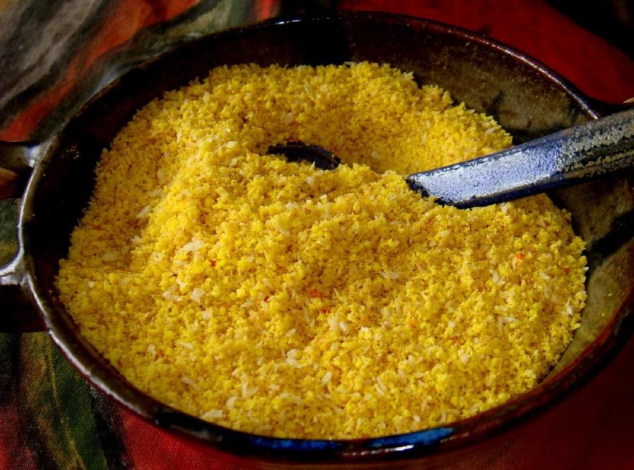 Pode juntar ao óleo uma colher de manteiga, para dar mais sabor à farofa.