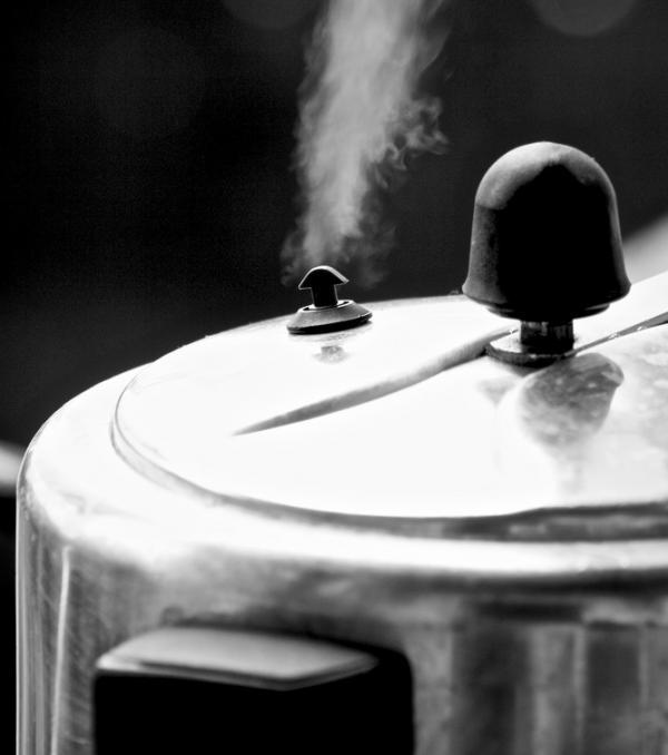 Coloque o feijão com a própria água do molho e as folhas de louro para cozinhar em uma panela de pressão por 30 minutos contados após pegar pressão.