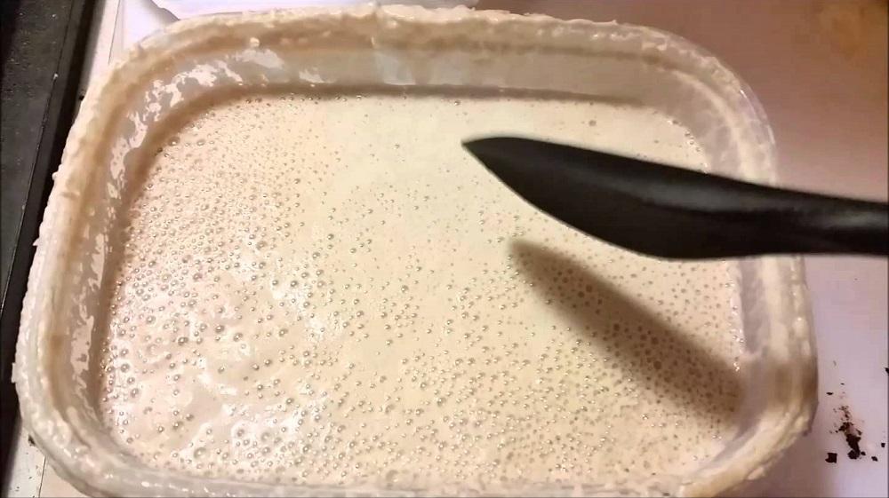 Para o alimentar basta colocar 2 colheres de sopa de farinha e 1 colher de água, misturar e deixar repousar. Depois das bolhas estarem ativas coloque na geladeira e assim o fermento continua em atividade. Agora que já sabe fazer fermento caseiro, confira a nossa receita de pão caseiro.