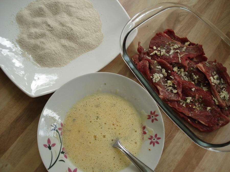 Tempere os filés com sal, alho e orégano a gosto. Bata os dois ovos e reserve.