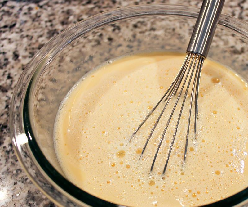 Depois, pegue em uma tigela e bata os ovos com a ajuda de uma batedeira manual ou elétrica. Adicione o açúcar, o leite e a essência de baunilha. Se desejar que o aroma e o sabor do flan seja mais intenso, você pode acrescentar mais quantidade de baunilha que a recomendada nesta receita. Misture bem todos os ingredientes com a batedeira até que estejam completamente integrados.