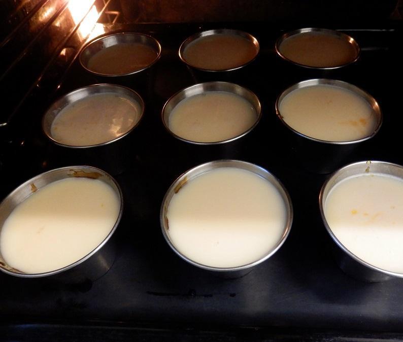 Quando a mistura do flan de baunilha estiver pronta, coloque-a no molde ou nas formas de pudim. Coloque o molde no forno, a uma temperatura de 190ºC e cozinhe seguindo a técnica do banho maria durante pelo menos 1 hora.