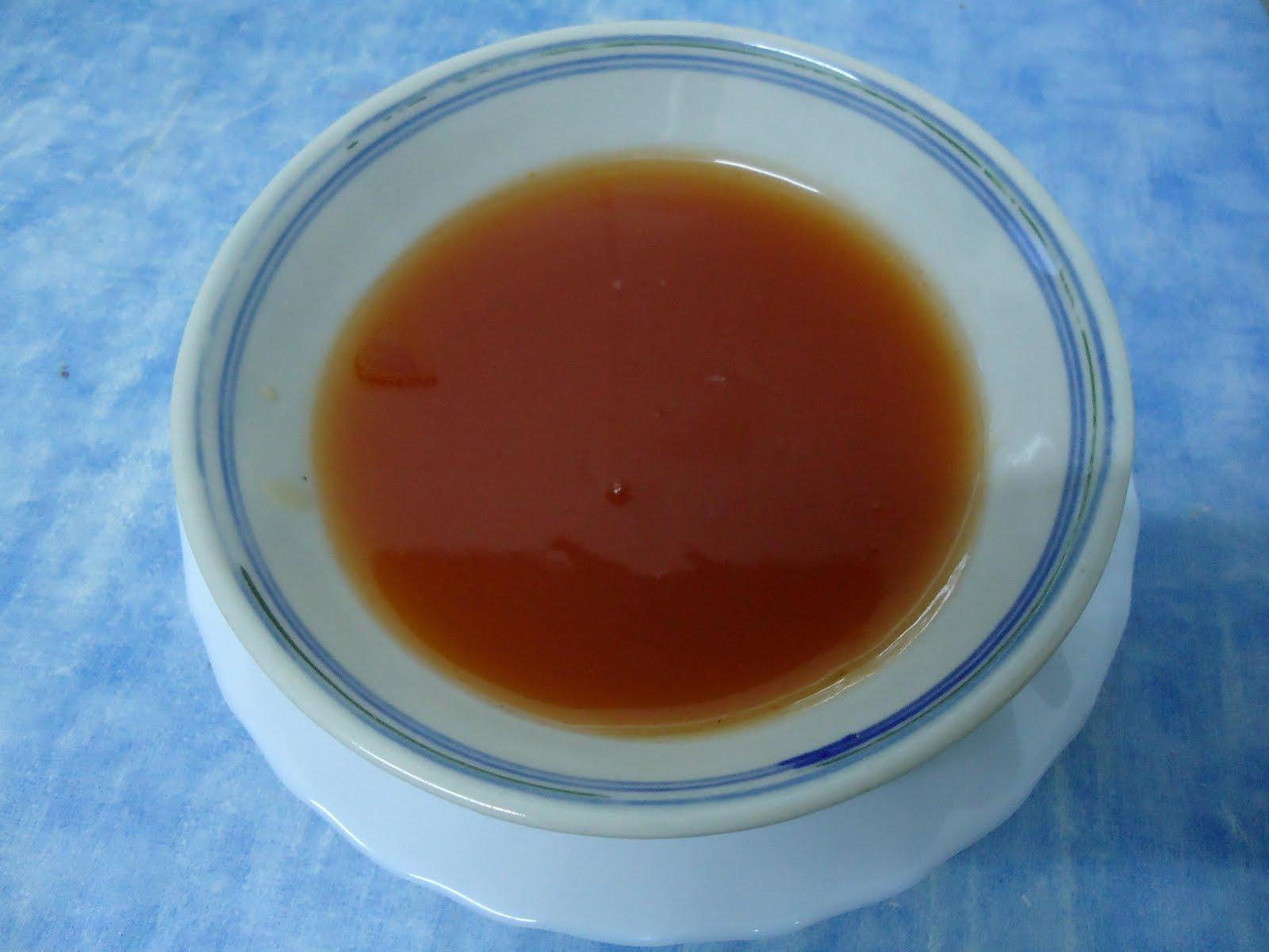 Para fazer o molho agridoce, deve-se misturar os seguintes ingredientes em um recipiente: acrescente três colheres de sopa de vinagre e três colheres de sopa de açúcar mascavo. Caso não tenha este tipo de açúcar, você pode usar o açúcar branco. Adicione também três colheres de suco de abacaxi adoçado. Em seguida, acrescente à mistura uma colher de soja, uma de azeite de girassol e uma de mel. Adicione sal e pimenta a gosto e acrescente uma colher de chá rasa de gengibre em pó e uma colher de sopa de ketchup. Observe a imagem, seu molho agridoce ficará mais ou menos assim.