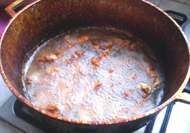 Prepare a sua panela com óleo suficiente para fritar. Coloque em fogo alto para esquentar muito bem. Quando estiver quase esfumaçando, vá pondo os pedaços de frango para fritar. Neste momento, pode separar uns dos outros que no passo anterior certamente ficaram grudados. Mas não se preocupe demais por isso. Como as tiras devem ser pequenas e finas, se o fogo estiver muito quente, estarão prontas em 3-4 minutos. Certifique-se que o óleo realmente esteja quente. Prove pondo um pedaço de frango dentro e que faça muitas bolhas como na imagem, porque caso contrário, ficarão muito oleosos.