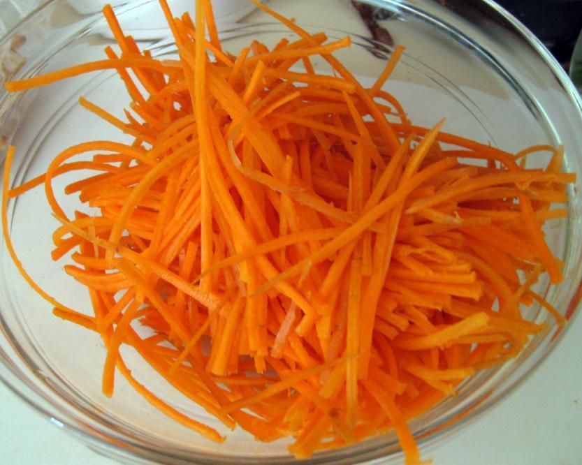 Quando tiver o frango em tiras, vamos cortar as verduras. Começamos com as cebolas, primeiro temos que limpar e tirar a pele e, depois, cortamos também em tiras finas; fazemos o mesmo com a cenoura. Depois pique os dentes de alho e, se quiser dar um toque mais exótico à sua receita, opte por ralar um pouco de gengibre seco. Neste artigo de umComo contamos a você como usar o gengibre na cozinha.