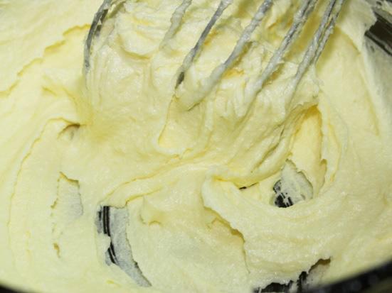 Para continuar com o frosting para tortas ou cupcakes, comece a acrescentar pouco a pouco o açúcar de confeiteiro. É importantíssimo não introduzi-lo de uma vez para que seja mais fácil bater a mistura. Bata a manteiga com o açúcar até conseguir uma massa homogênea. Como você verá, o resultado é uma massa de cor amarelada, com uma textura espumosa e suave.