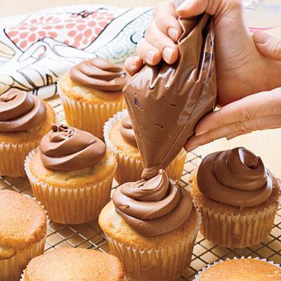 E pronto! Você já tem seu frosting de chocolate preparado para acrescentá-lo às suas tortas ou cupcakes. Coloque no seu saco de confeitar e faça as formas de que mais gostar para decorar suas sobremesas de confeitaria.
