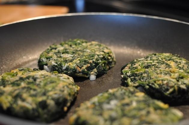 Por último quando estiverem todos prontos, coloque uma frigideira no fogo com um pouquinho de óleo e vá fritando os hambúrgueres de espinafre. Pronto! Estarão preparados para servir e comer como quiser, seja dentro do pão, acompanhados de queijo, tomates-cereja, batatas, etc.