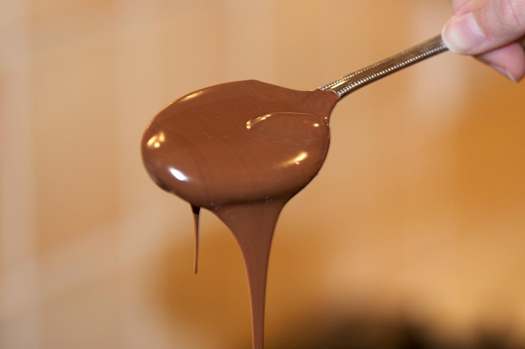 Se preferir, pode derreter o chocolate ao leite em banho maria, colocando-o numa panela. Adicione uma pitada de sal ao chocolate derretido e misture bem.