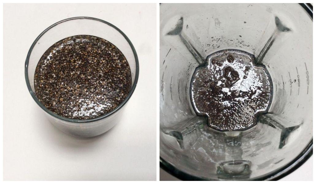 Na noite anterior, deixe de molho a chia (1 xícara de chá) em uma quantidade de água que cubra todos os grãos por 8 horas.