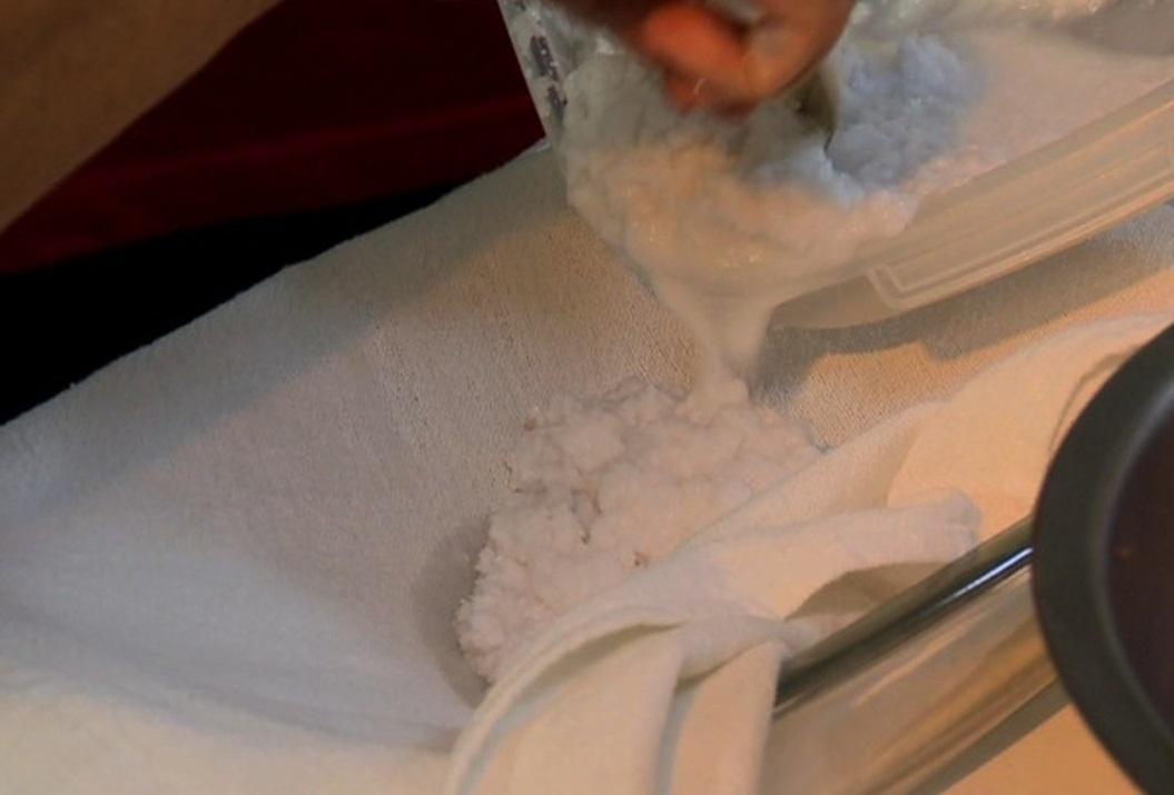 - Um pano de tecido para fazer queijo ou um pano de prato (esterilizados)