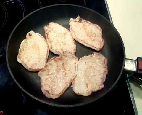 Pegue em outra frigideira e cozinhe os filetes de lombo com um pouco de azeite de oliva até que adquiram um tom esbranquiçado. Não deixe que cozinhem demais, ou poderiam ficar secos e demasiado duros.