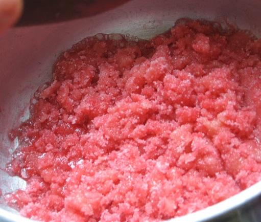 Leve ao fogo baixo uma panela com a água, o açúcar, a glicose e o corante.