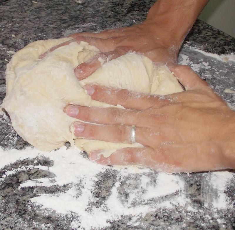 Em seguida sove a massa com as mãos até ficar homogênea e deixe repousar por 30 minutos.