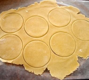 Com a ajuda de um copo ou outro utensílio de diâmetro suficiente, corte a massa em círculos.