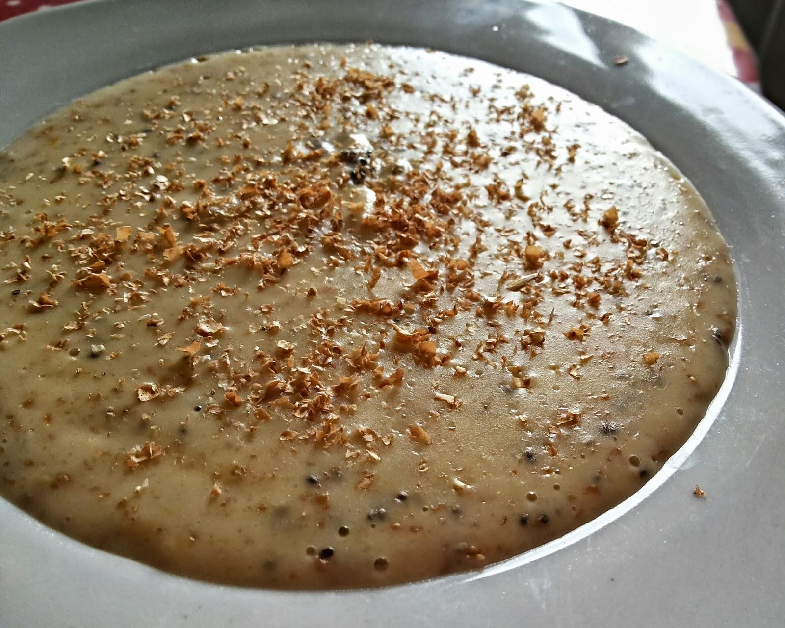 Quando estiver pronto, despeje num recipiente e adicione rodelas de banana, se quiser.