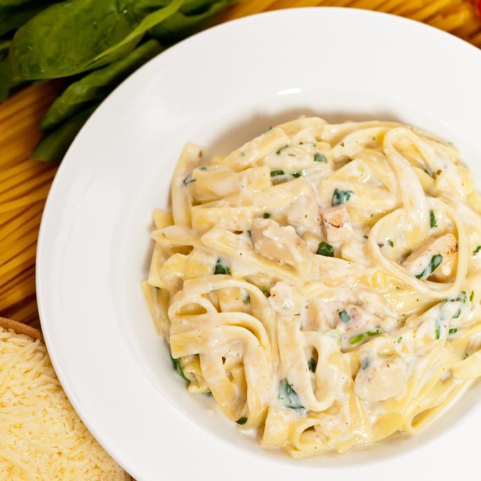 Esta é a receita clássica do molho alfredo, mas você pode dar um toque especial acrescentando, por exemplo, espinafre fatiado muito fino e cogumelos. Se quiser incluir estes ingredientes, quando refogar a cebola, acrescente esses ingredientes para que cozinhem junto com ela, assim você terá pronta a base de um molho ainda mais especial.