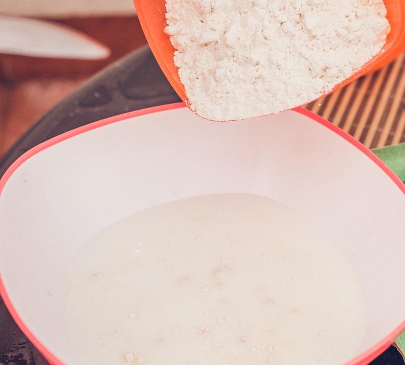 Misture a farinha com leite até que se integrem e adiciona a mistura à panela com a manteiga. Vá mexendo para que não empelote. Se empelotar, pode passar uma batedeira de mão rapidamente. Adicione o requeijão e continue mexendo.
