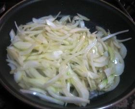 Quando os queijos tiverem derretido, retire a panela do fogo e reserve o molho. Agora, descasque a cebola grande e corte-a em juliana, ou seja, em tiras longas e finas para cozinhar mais rápido. Coloque uma frigideira no fogo, acrescente um pouco de azeite de oliva, adicione a cebola em tiras e uma pitada de sal. Cozinhe a cebola até que fique molinha, acrescente um copo de vinho branco, deixe reduzir um pouco e, por último, passe pelo liquidificador.