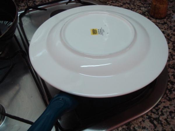 Neste momento, já poderá virar a omelete, para isso, use um prato grande que cubra toda a circunferência da frigideira. Tampe-a, vire, e em seguida coloque a omelete com delicadeza novamente na frigideira para que cozinhe do outro lado.