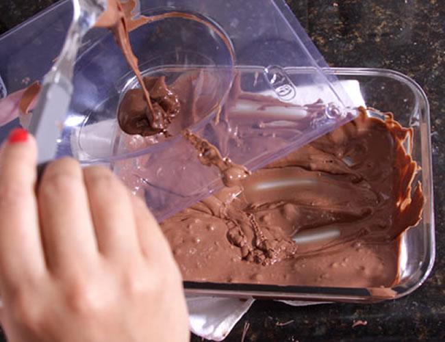 Dica: se a sua intenção é fazer um ovo de Páscoa de colher, faça uma camada mais grossa.