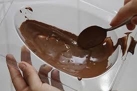 Deixe o chocolate esfriar ligeiramente e forre a forma com ele. Leve na geladeira por 10 minutos. Se achar que a primeira camada está muito fina, repita o processo mas lembre-se de deixar espaço no centro para o recheio.