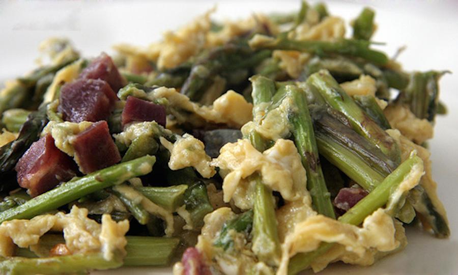 Quando estiverem do seu gosto, só terá que tirar do fogo e servir de imediato para que o prato esteja quente e recém feito. Se quiser, para dar um toque delicioso, pode polvilhar tirinhas de presunto por cima dos seus ovos mexidos com aspargos e conseguirá um prato de lamber os dedos.