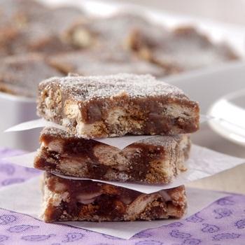 Unte uma forma retangular e verta a mistura nela. Deixe esfriar ao natural ou coloque na geladeira para endurecer mais rápido.