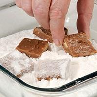 Quando o doce estiver bem sólido, corte pequenos retângulos e passe em uma vasilha com açúcar refinado. Está pronto a servir!
